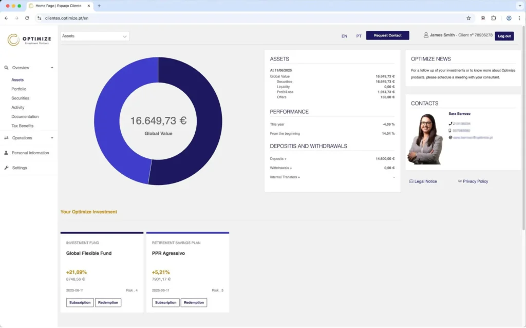 In Optimize Client Portal you can follow the performance of your investments , change your strategy , manage your positions and much more.