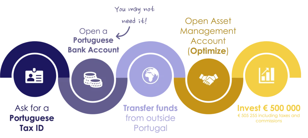 Transfer your funds directly from your bank account to Optimize and enjoy the benefit available to applicants from eligible countries – no need to open a bank account in Portugal. Eligible countries include the United States of America, Canada, Australia, New Zealand, Hong Kong, South Africa, Turkey, South Korea, Indonesia, Brazil, Taiwan, Japan, UK, Uruguay, Singapore, Israel, Malaysia, Switzerland and all European Union countries.
