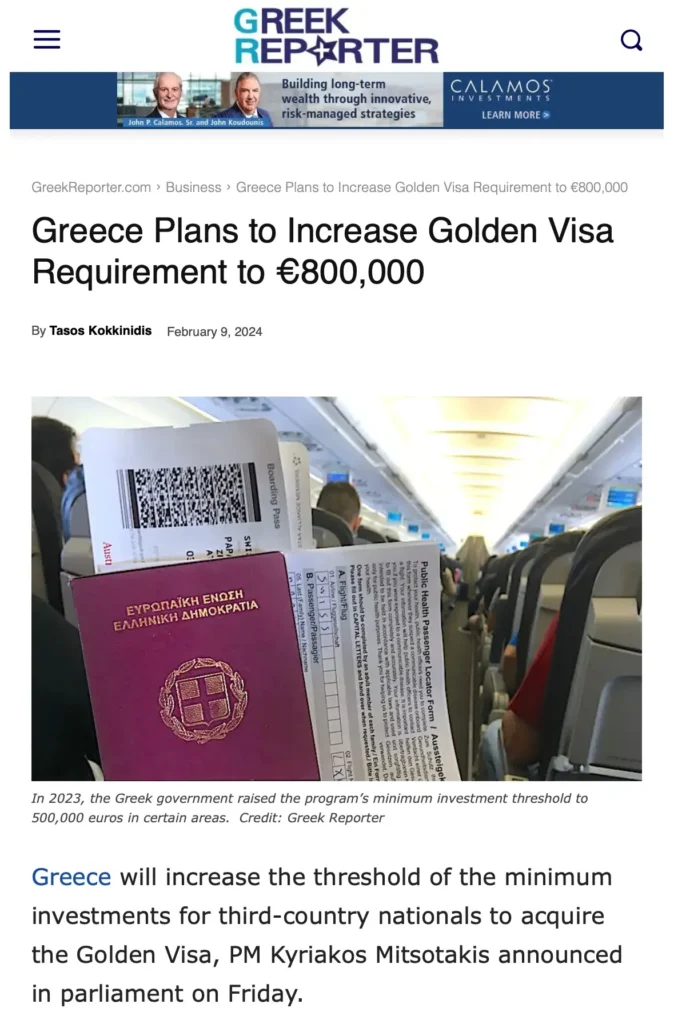 Minimum Investment for Golden Visa Eligibility: € 500 000,00